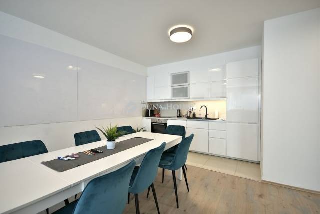 Budapest, 12. kerület Városmajor utcában, 2018-ban épült társasház első emeletén, tágas belső kertre néző, napfényes, nappali + hálós, amerikai konyhás, távolról vezérelhető mennyezeti hűtő-fűtő rendszerrel ellátott lakás, teremgarázs beállóval és tárolóval. A fűtés hőjét geotermikus hőszivattyús rendszer biztosítja. Az ingatlan gépesített, hűtőszekrény fagyasztóval, mosogatógép, mosógép, elszívó, főzőlap, sütő és mosógép, riasztó és az elektromos redőnyök is a felszereltség részei. A közös költség vízzel, fűtés és hűtés előleggel együtt 46.000 Ft, azaz ezen felül villanyt, és igény szerint internet és TV előfizetést kell fizetni.A teremgarázs beálló 17 MFt-ért, és mögötte a saját tároló 3 MFt-ért eladó. Hívjon bizalommal, hétvégén is - [------]