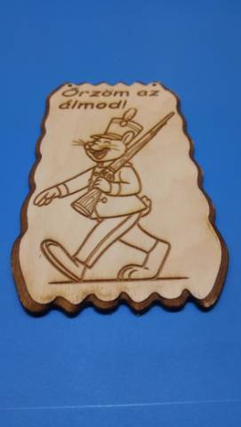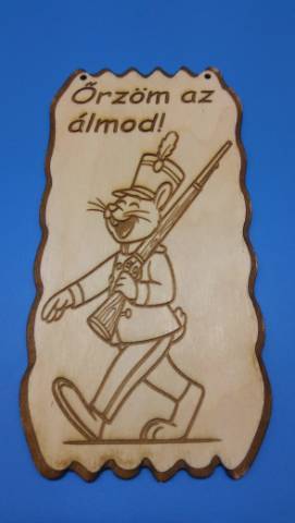 Ez a vidám, katonás nyuszi azért masírozik ilyen büszkén, hogy minden éjjel őrizze a kicsi álmát! Vidám, barátságos és egy kicsit bohókás ez a lézergravírozott fa tábla. A mosolygós, katonaruhás nyuszi, büszkén vállalja a feladatot: "Őrzöm az álmod!" Kiváló választás gyerekszobába, kiságy fölé vagy ajándéknak keresztelőre, születésnapra, babaváróra. A természetes fa erezete és a tiszta vonalú gravírozás együtt kellemes, megnyugtató hangulatot teremt, miközben játékos karaktert visz a szobába. Rendkívül könnyű, bármilyen falfelületre egyszerűen felhelyezhető.